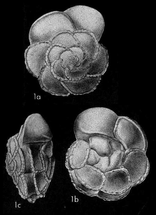 Ici un globotruncana (De : Treatise on Invertebrate Paleontology, Moore Editor, University of Kansas 1964, C661)